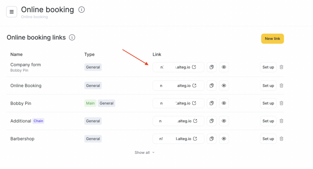 1. In the main menu, go to Online booking > Online booking links.