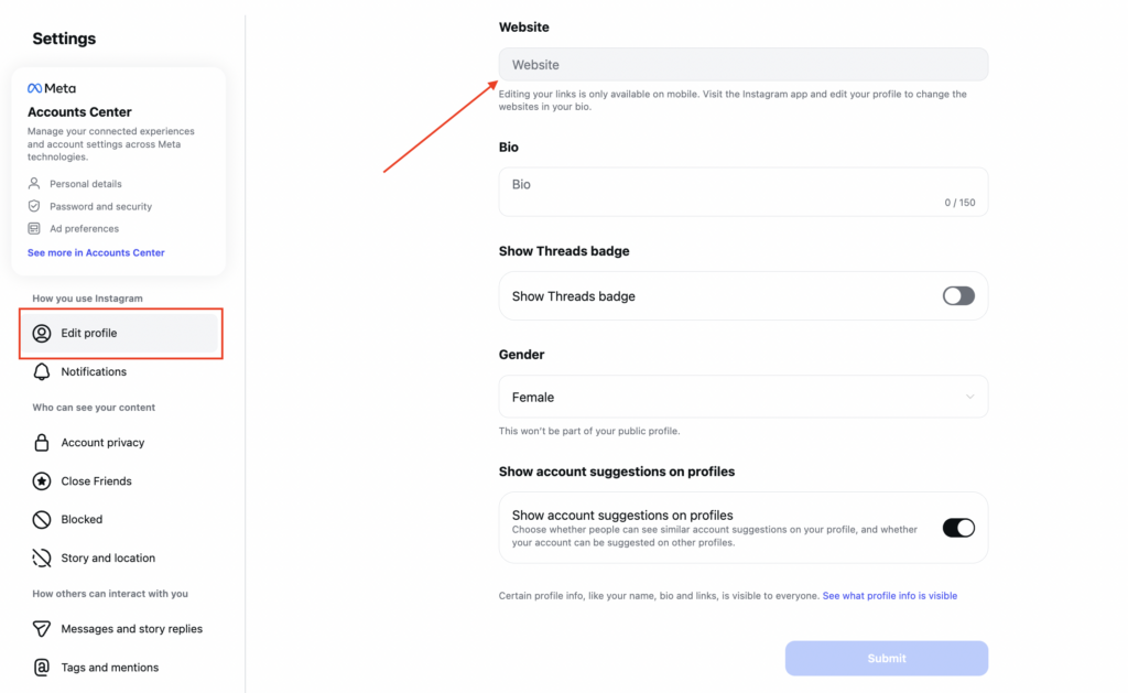 2. Tap Edit profile.