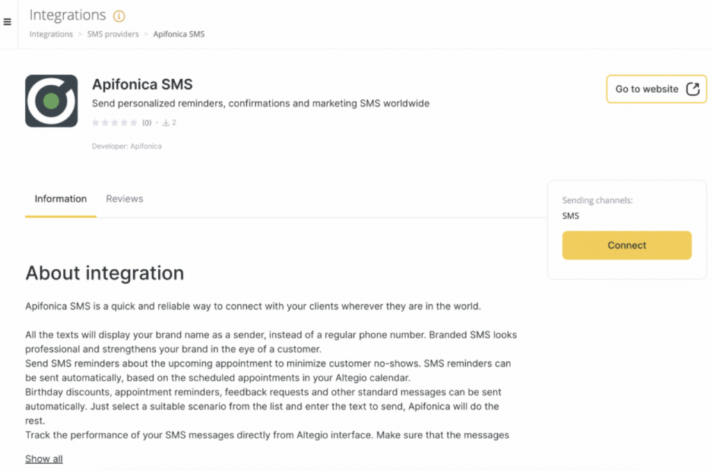 SMS reminders can be sent automatically based on scheduled appointments in your Altegio calendar.