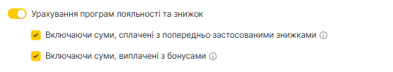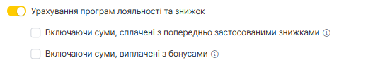 - Оплата за акцією — чи враховувати суму, сплачену в межах акції.
