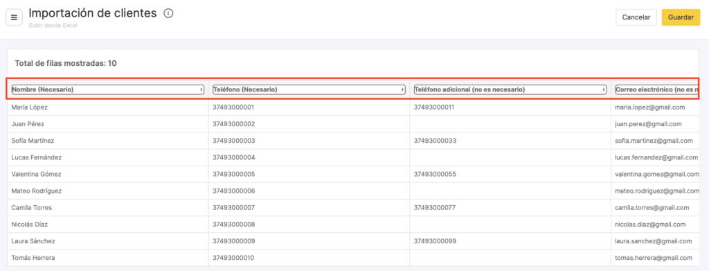 Solo se puede subir un cliente por número de teléfono, por lo que, para evitar la pérdida de datos, debes comprobar que no haya números duplicados antes de realizar la carga.