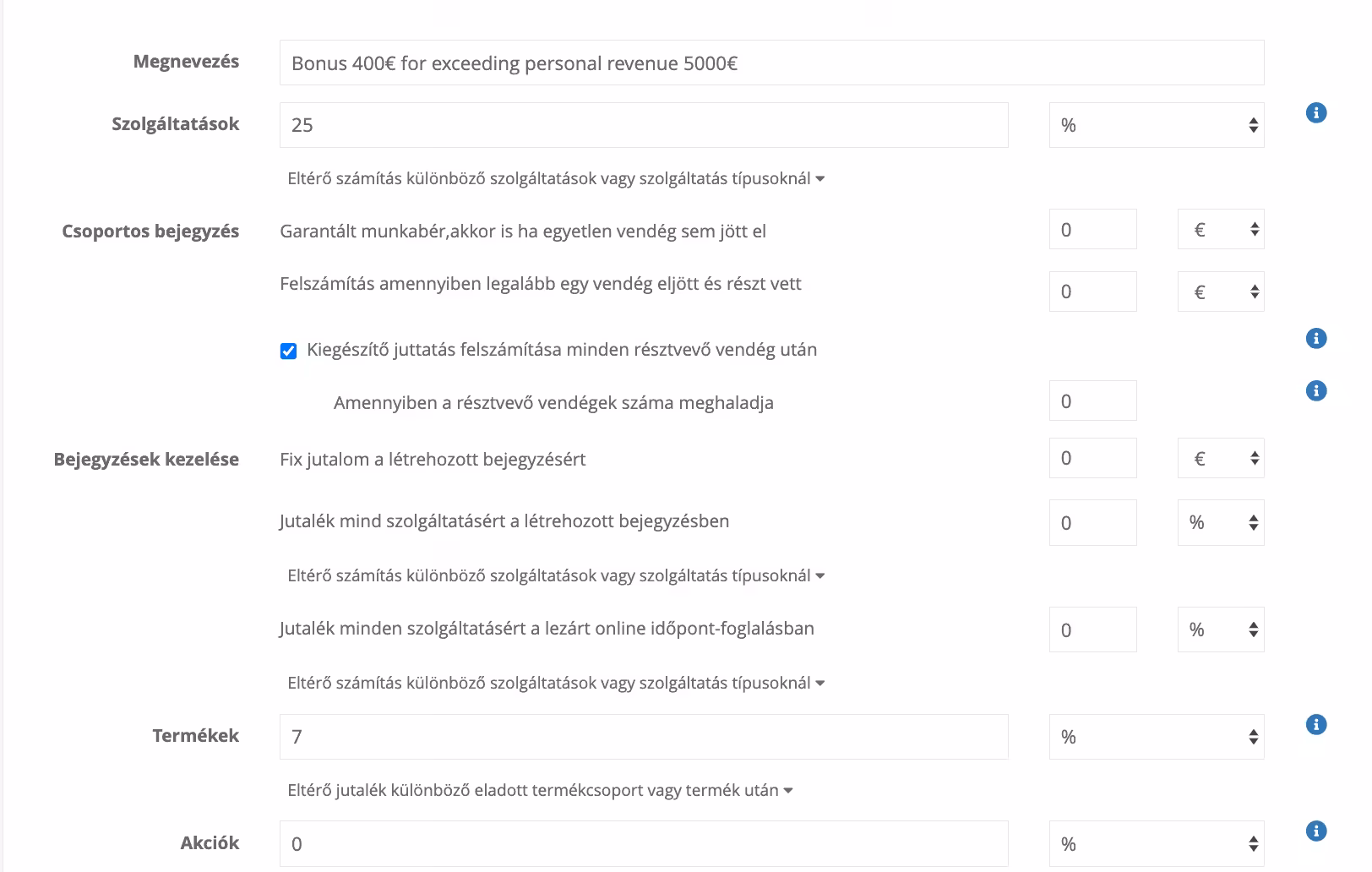 Rugalmas kompenzációs szabályokat állíthat be, hogy motiválja csapatát az eladások növelésére, az akciókban való részvételre és a célok elérésére.
