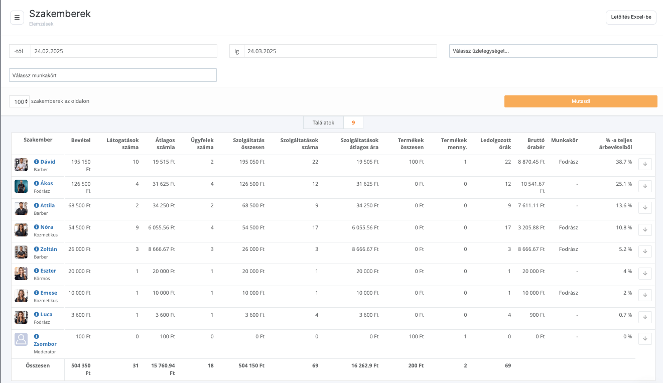 Adatok elemzése a szalonban