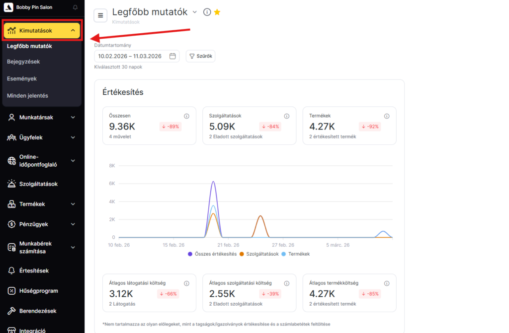 - Visszatérési arány — figyeld az ügyfelek visszatérésének gyakoriságát, a legnépszerűbb szolgáltatásokat, valamint azt, hogy mely szakembereket választják leggyakrabban.