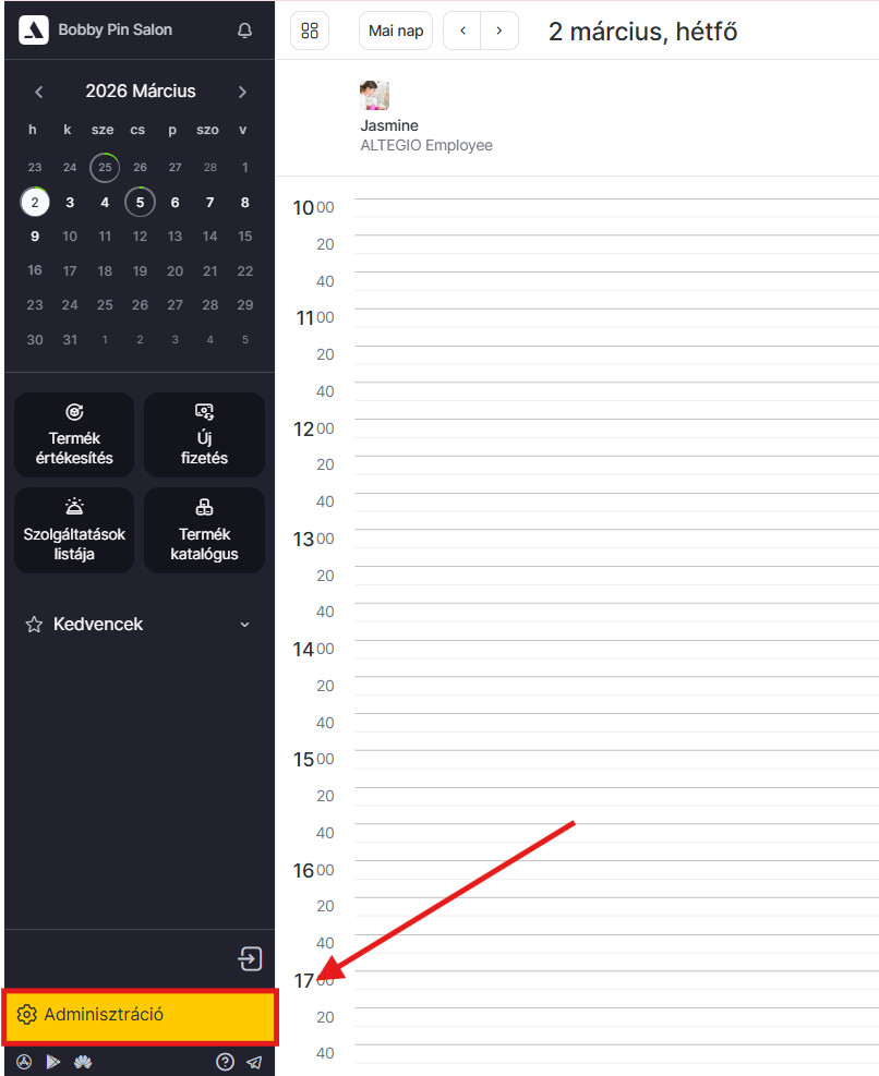- Lépj az Adminisztráció módba és válaszd a Szolgáltatás menüpontot.