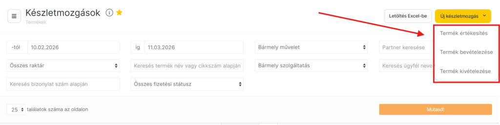 - Az Termékek > Készletmozgások menüpontban — ez a cikk ezt a módszert mutatja be.