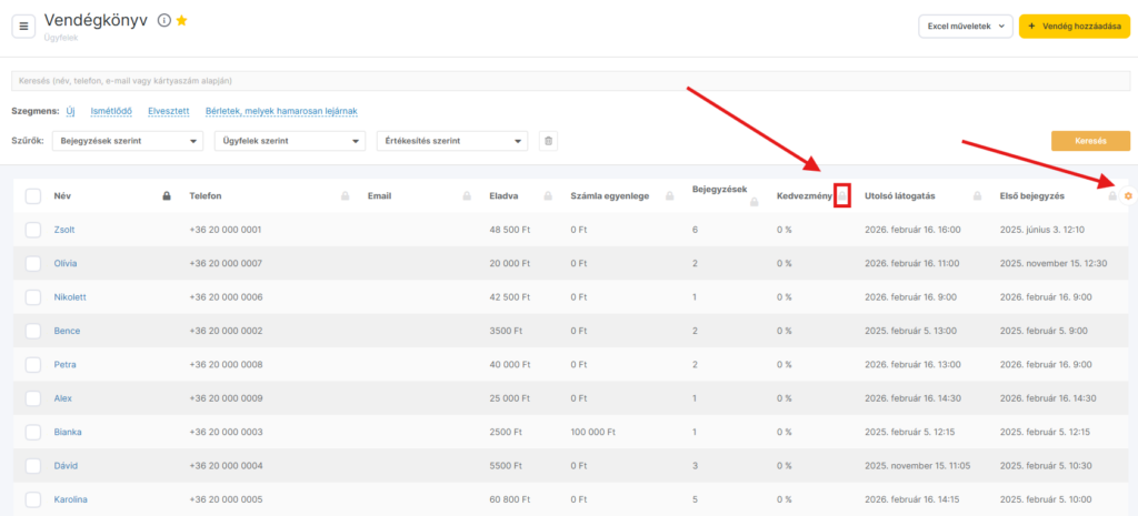 Ez például hasznos, ha szeretnéd látni, mely ügyfelek nem jártak nálad hosszabb ideje, vagy ha meg akarod találni a legnagyobb bevételt hozó vendégedet.