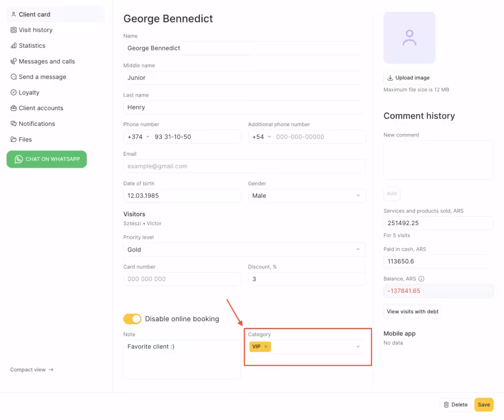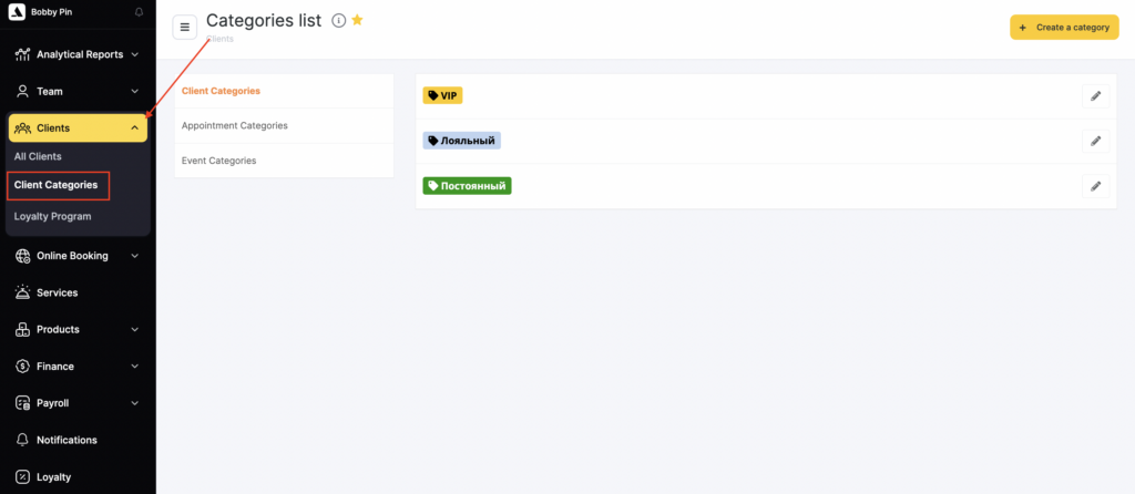 You can easily categorize clients in Altegio based on certain criteria by assigning them to different categories. Categories are represented by colorful tags with customizable names that make it easy to label and organize clients.