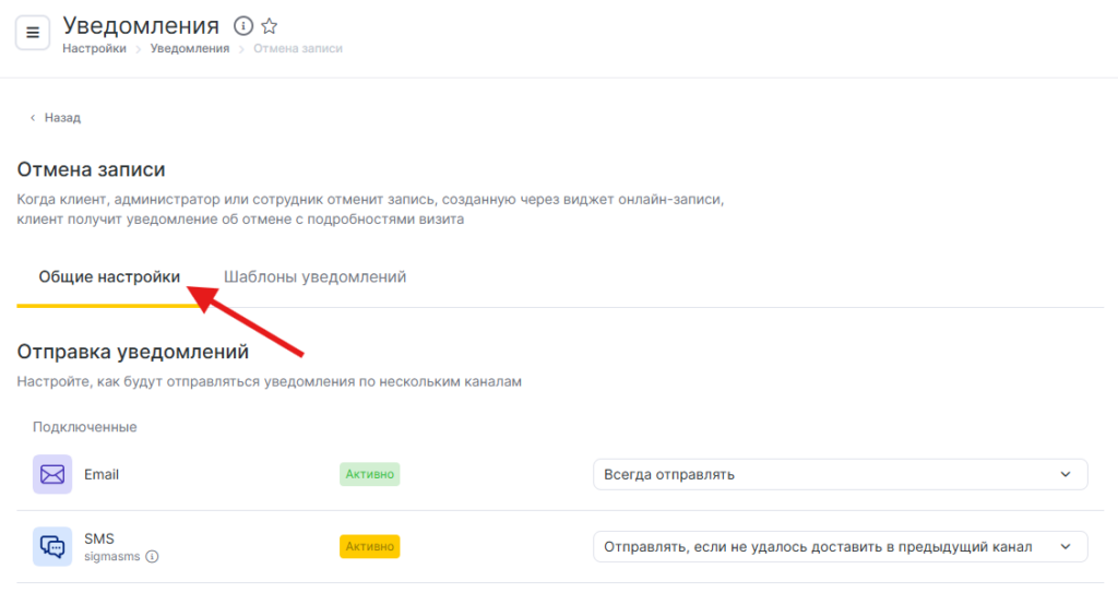 1. На вкладке Общие настройки настройте, как будут отправляться уведомления по нескольким каналам. Подробнее о сценариях отправки уведомлений по разным каналам читайте в статье.