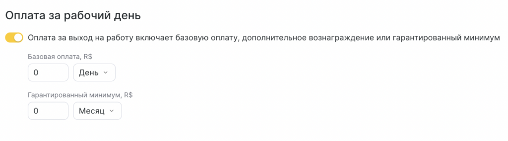 Активируйте “Оплата за выход на работу”.