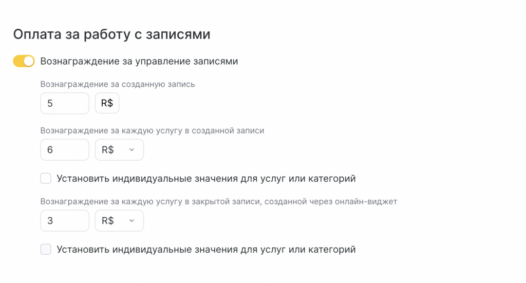 - Активируйте опцию “Вознаграждение за управление записями”.