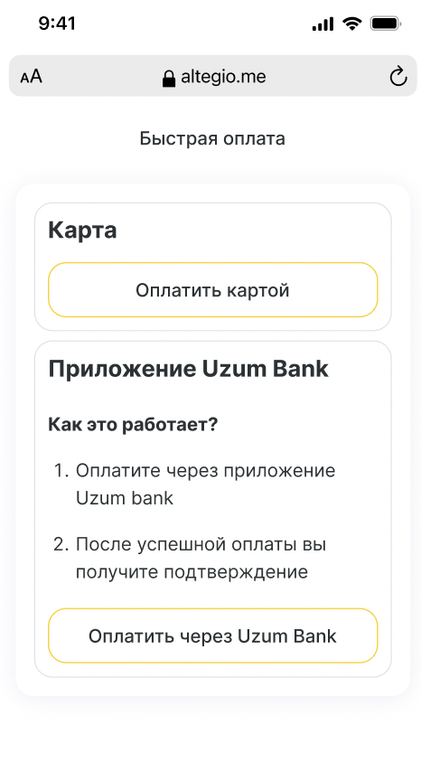 Платежи в рассрочку или с карт Uzum Bank, а также Humo, Uzcard, Visa и MasterCard