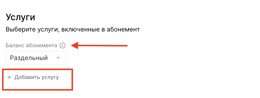 Далее выберите услуги, включенные в абонемент, и баланс.