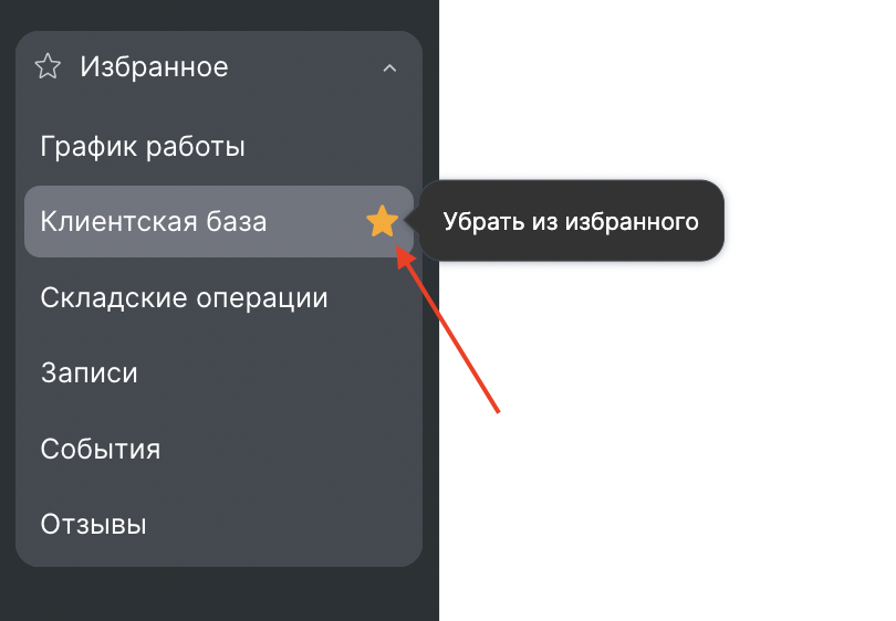 - Нажмите иконку звезды рядом с пунктом, который хотите удалить.