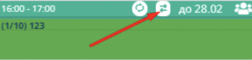 Групповые события, объединенные в серию событий, имеют специальное отображение в журнале записи: в шапке слота отображается соответствующая иконка и дата окончания расписания.