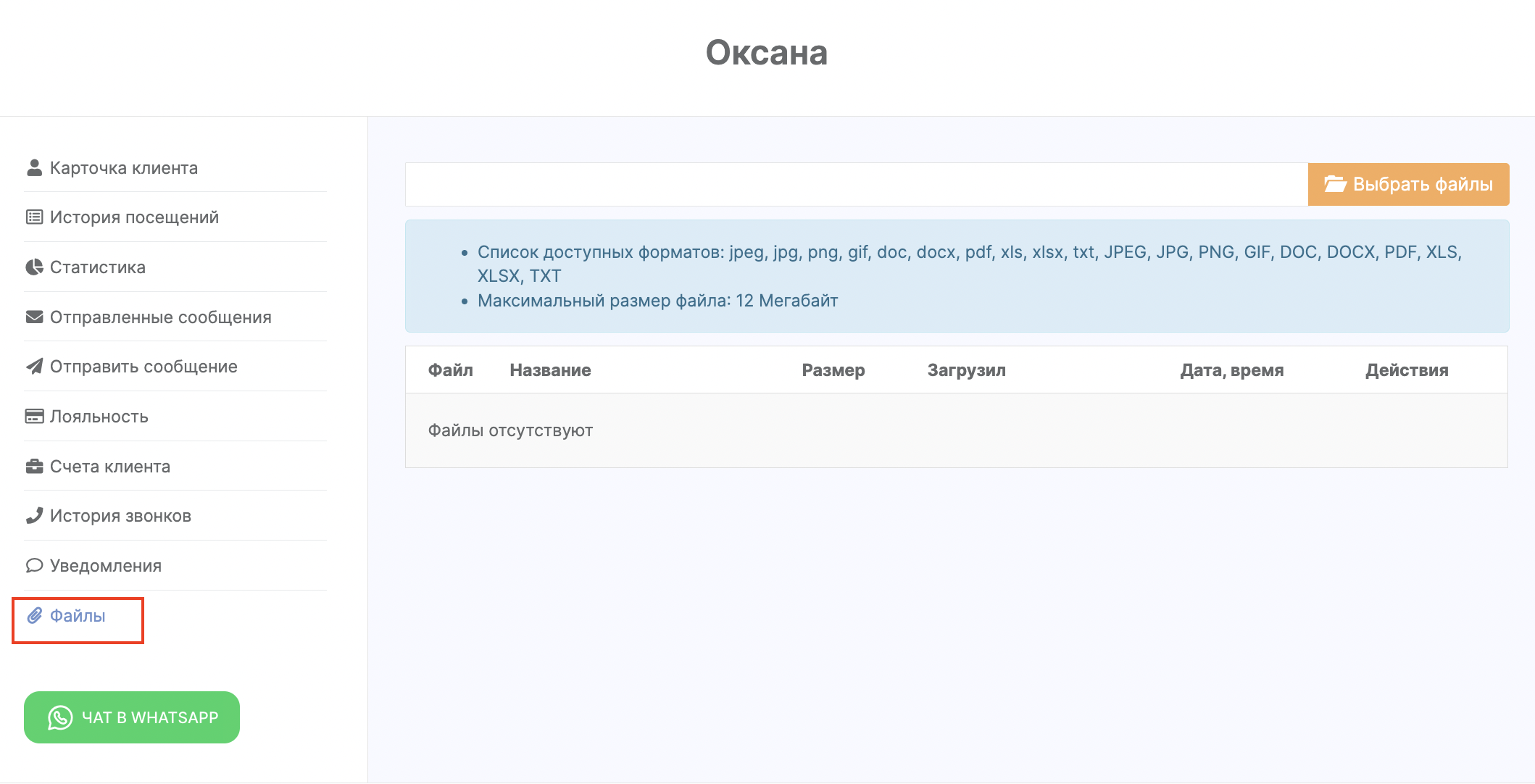 Вы можете загрузить файлы клиента и хранить их в Altegio, а также скачивать или удалять.