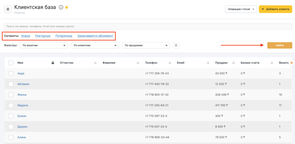 Отфильтруйте информацию о клиентах по необходимым пунктам, нажмите кнопку «Найти».