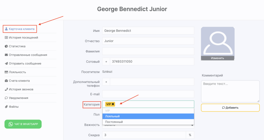 Как присвоить категорию клиенту? #