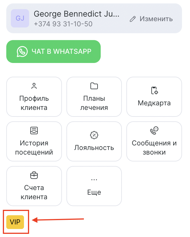 В разделе «Клиенты» > «Клиентская база» откройте карточку клиента и в поле «Категория» выберите нужную метку из выпадающего списка.Нажмите кнопку «Сохранить».