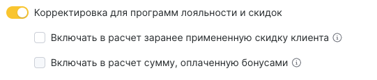 - Заранее примененная скидка клиента — учитывать ли сумму, которая была уменьшена из-за скидки.