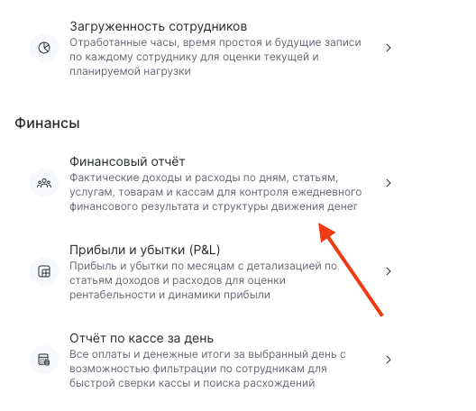 Для начала работы перейдите в раздел Отчеты > Все отчеты > Финансы > Финансовый отчет.