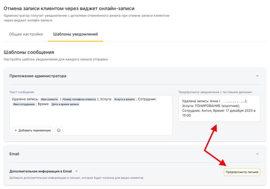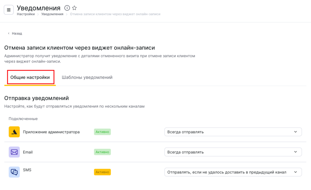Сразу после того, как клиент удаляет через виджет запись, созданную через виджет онлайн-записи или через журнал записи, администратор получит уведомление вместе с деталями удаленного визита.