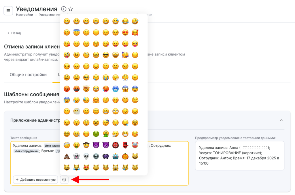 Автоматическое уведомление, которое высылается администратору, когда клиент отменяет запись в личном кабинете.