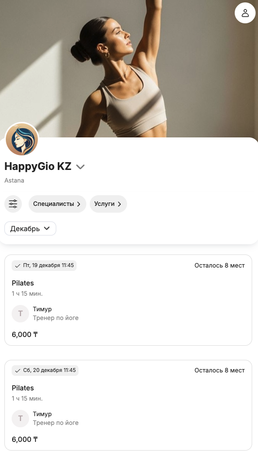 Загруженное изображение будет отображаться в шапке при любом сценарии онлайн-записи (меню, пошаговый, короткий пошаговый — для индивидуальной записи, а также в групповой и смешанной) на первой странице.