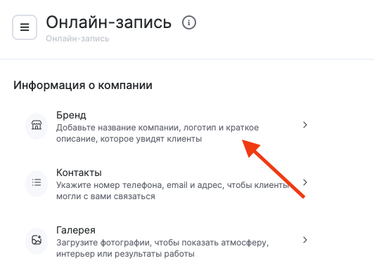 - В разделе Онлайн-запись > Настройки перейдите в блок Бренд.