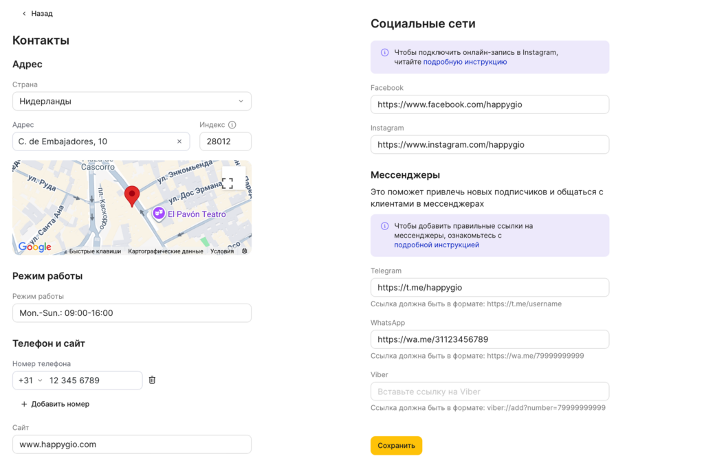 - Указать название вашего бренда в онлайн-записи, добавить контакты и фото