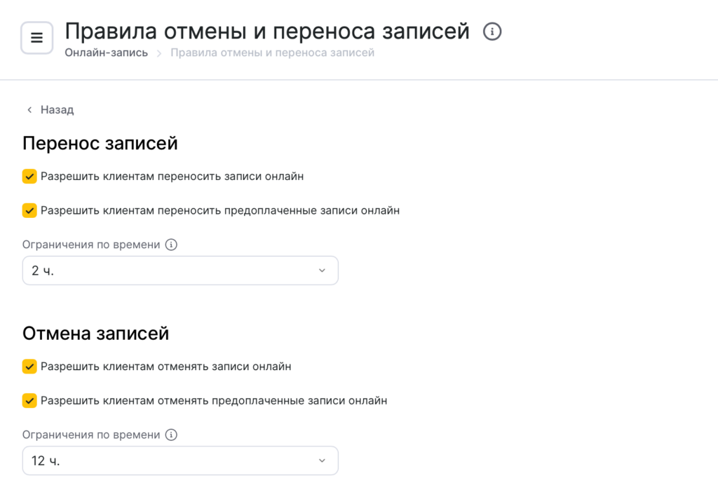 Эти настройки помогают улучшить клиентский опыт, сократить количество пропущенных визитов и выстроить более долгосрочные и устойчивые отношения с клиентами.
