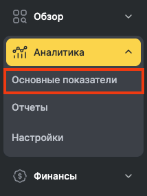 - Для формирования отчета перейдите в раздел Аналитика > Основные показатели.