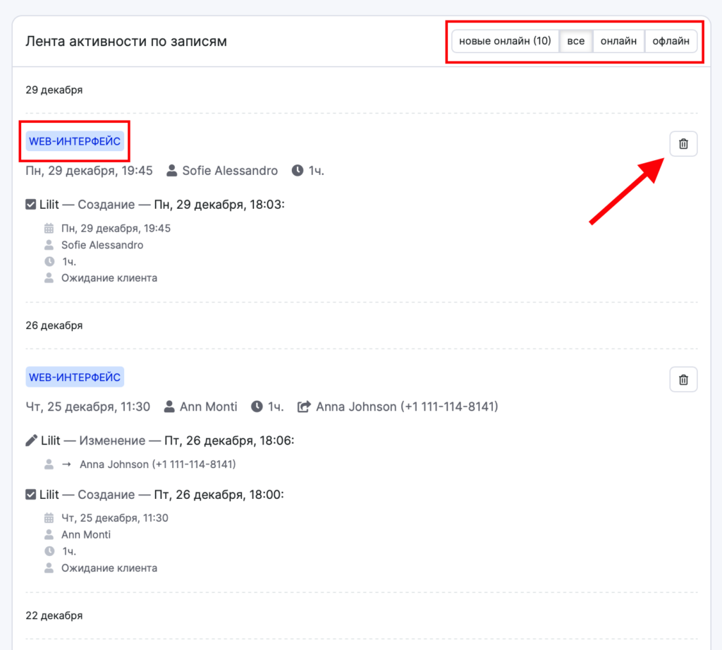 - Новый виджет — клиент самостоятельно записался через виджет.