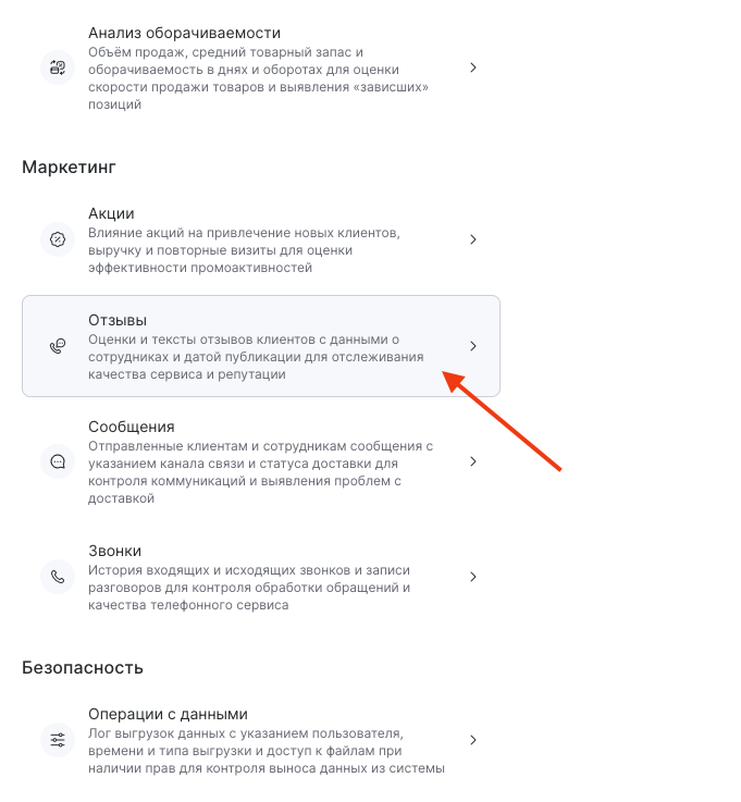 В разделе Отчеты > Все отчеты > Маркетинг > Отзывы представлена информация по всем отзывам, которые оставили клиенты филиала. Среди них отзывы, оставленные как в описании компании, так и в описании сотрудников.