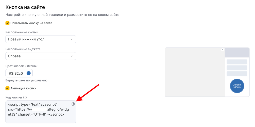 После того как все настройки онлайн-записи выполнены, установите виджет на сайт.