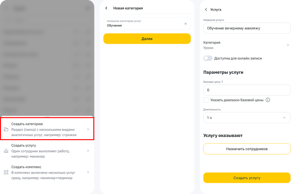 Создание категорий и услуг #