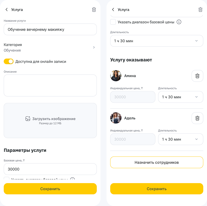 Настройки услуг можно задать как в веб-версии Altegio, так и в мобильном приложении. Все данные автоматически синхронизируются.