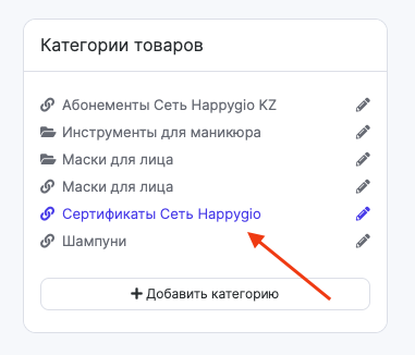 - Некоторые услуги и любые товары (при выборе этого вида появится кнопка Изменить, с помощью которой можно будет выбрать категории/услуги).