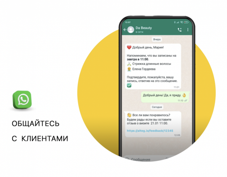 WAZAPA позволяет отправлять уведомления вашим клиентам из Altegio в самый популярный мессенджер WhatsApp.