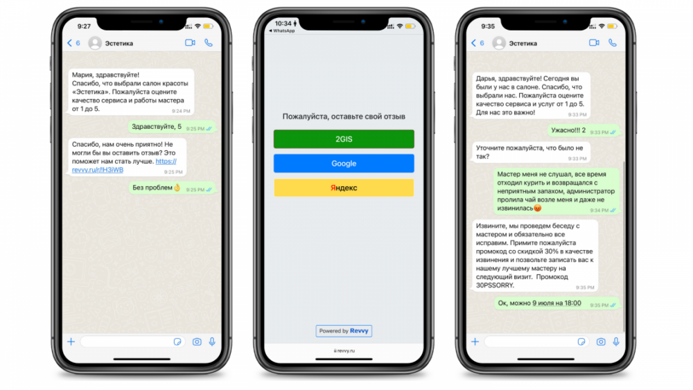 — Отсутствие негативных отзывов: В 99% случаев, негативные отзывы не будут доходить до публикации в интернете. С помощью Revvy вы перехватываете их, общаетесь с недовольным клиентом, решаете проблему и сохраняете репутацию бизнеса.
