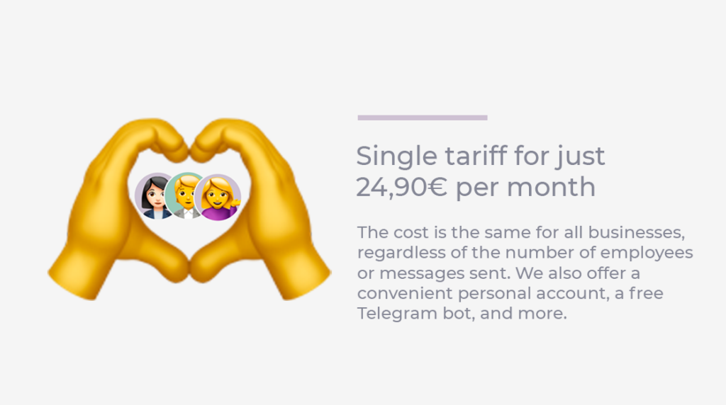 💲Тариф единый и не зависит от количества сотрудников и отправленных сообщений.