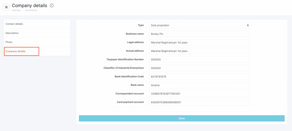 All details you enter will be automatically displayed in the accounts for the renewal of your subscription plan. Fill out the information in this section once and you won’t have to enter details every time.