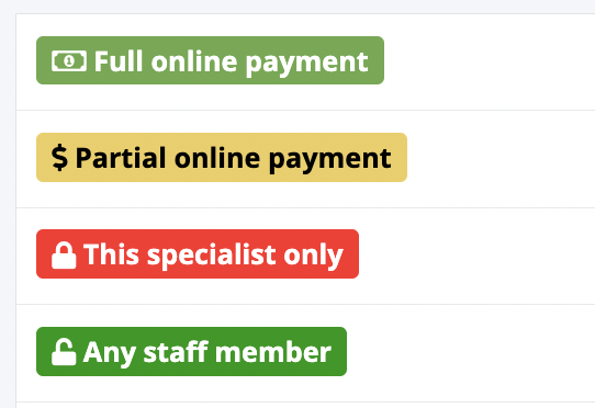 - This specialist only: This category indicates that the client has made their booking for a specific staff member.