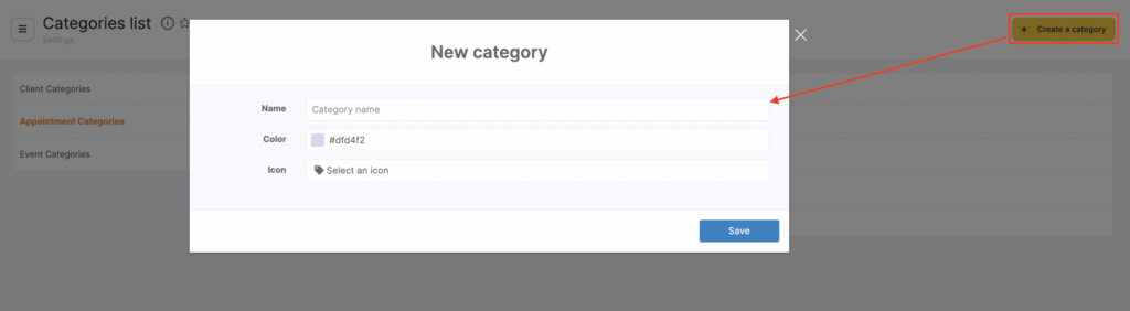Enter the name for the category, select a color for the tag and icon (for the Appointment category), and click Save. Your new category will appear in the list.