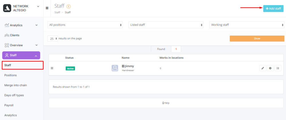 In the main menu of the chain interface, go to the Staff – Staff section.