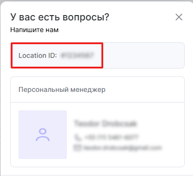 - В открывшемся окне вы увидите Location ID. Это и есть ID компании.