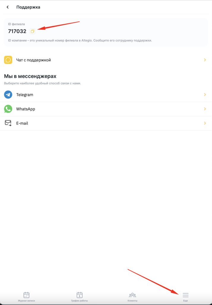 ID компании – это уникальный номер филиала в Altegio.