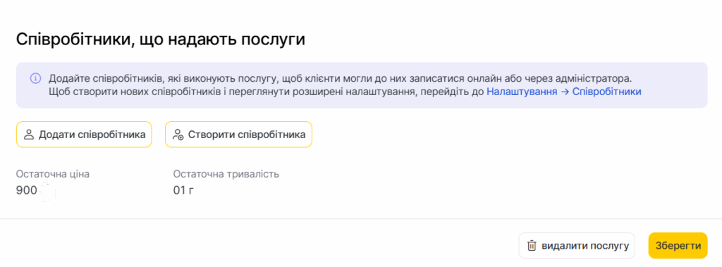 - Ви можете призначити кількох співробітників на одну послугу.