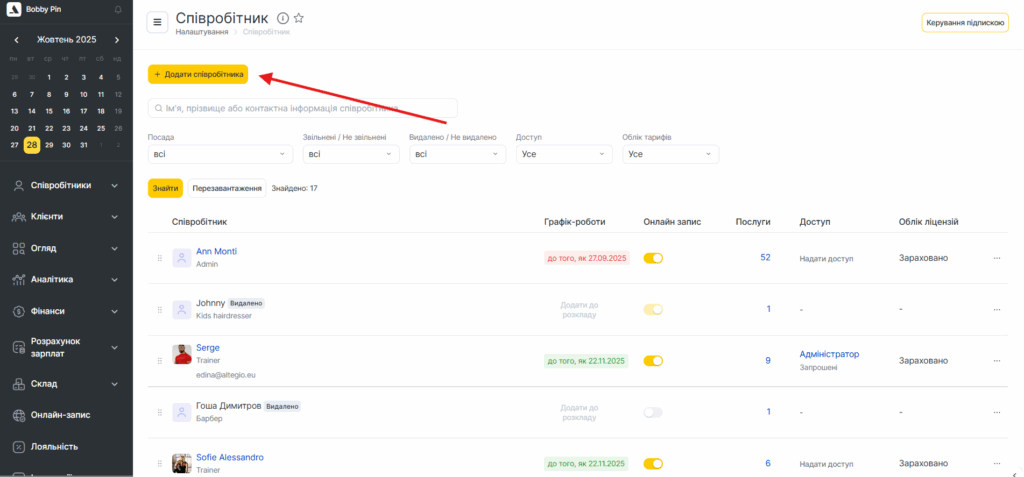 2. У лівому верхньому куті натисніть кнопку «Додати співробітника».