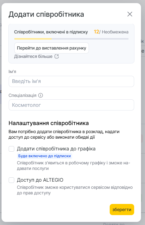 - Поставте галочку «Додати співробітника до графіка» (актуально лише для нового інтерфейсу).